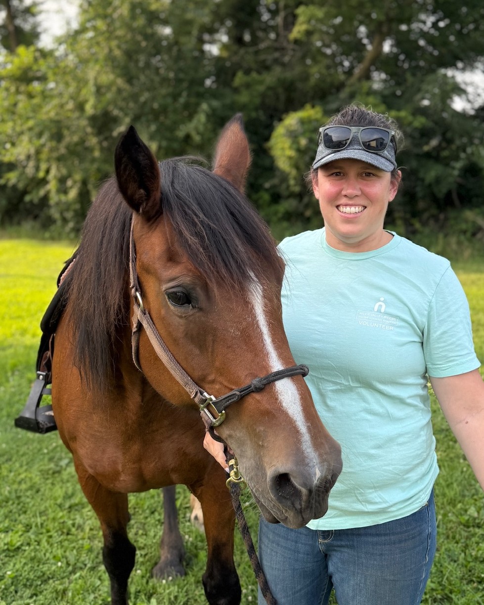 | At River Valley Riders, our volunteers are the heartbeat of every lesson, trail ride, and smile. Each newsletter, we’re excited to introduce you to one of the incredible people who give their time, energy, and love to make RVR’s mission possible. Q&A with Kristin Berghoff What inspired you to start volunteering with River Valley Riders? “I got involved with RVR when I moved to the Twin Cities after college. I had a love for horses and enjoyed working with people with special needs. I had previously volunteered at a therapeutic horseback riding place near my hometown. When I moved to the Twin Cities I looked for something similar and found RVR. For a while I helped bring one of the volunteer horses to the program and very briefly a volunteer donkey!” |