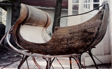 | While Loomis is not sure who owned the sleigh originally, she noted that it did come from a farm in New Hampshire, where she is originally from: “My best guess—the sleigh was purchased new around 1900-1910, right around the end of the horse and buggy era. It was likely stored in the hayloft of a barn and forgotten for a long time.” Loomis first bought the sleigh in 1979 and paid $150 for it, which Loomis emphasizes was, “...a lot of money back then!” |