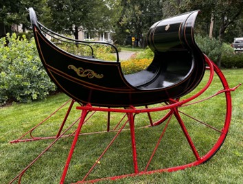 | Kim Loomis, a retired chemistry professor, has owned a vintage sleigh since she was 17. The sleigh has traveled with her from New England to the Midwest. After several moves, Loomis (sleigh in tow) landed in White Bear Lake, Minnesota. The sleigh is close to 120 years old, with Loomis having recently finished the final painting. The sleigh has been generously donated to River Valley Riders. Loomis noted that she looks forward to seeing the sleigh harnessed to a River Valley Riders horse, stating, “…now I hope snow will come through for some good sleigh rides.” |