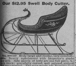 | When asked what the sleigh means to her personally, Loomis responded, “l loved horses and did have a horse that drove, but the sleigh means more to me than a fun sleigh ride. I admire its craftsmanship and art. You just don't see this kind of art on our everyday things now. Simple sleighs like this one sold mail-order from Sears and Roebuck in 1900. They were beautiful and it is rare these days to have one in such good condition.” |